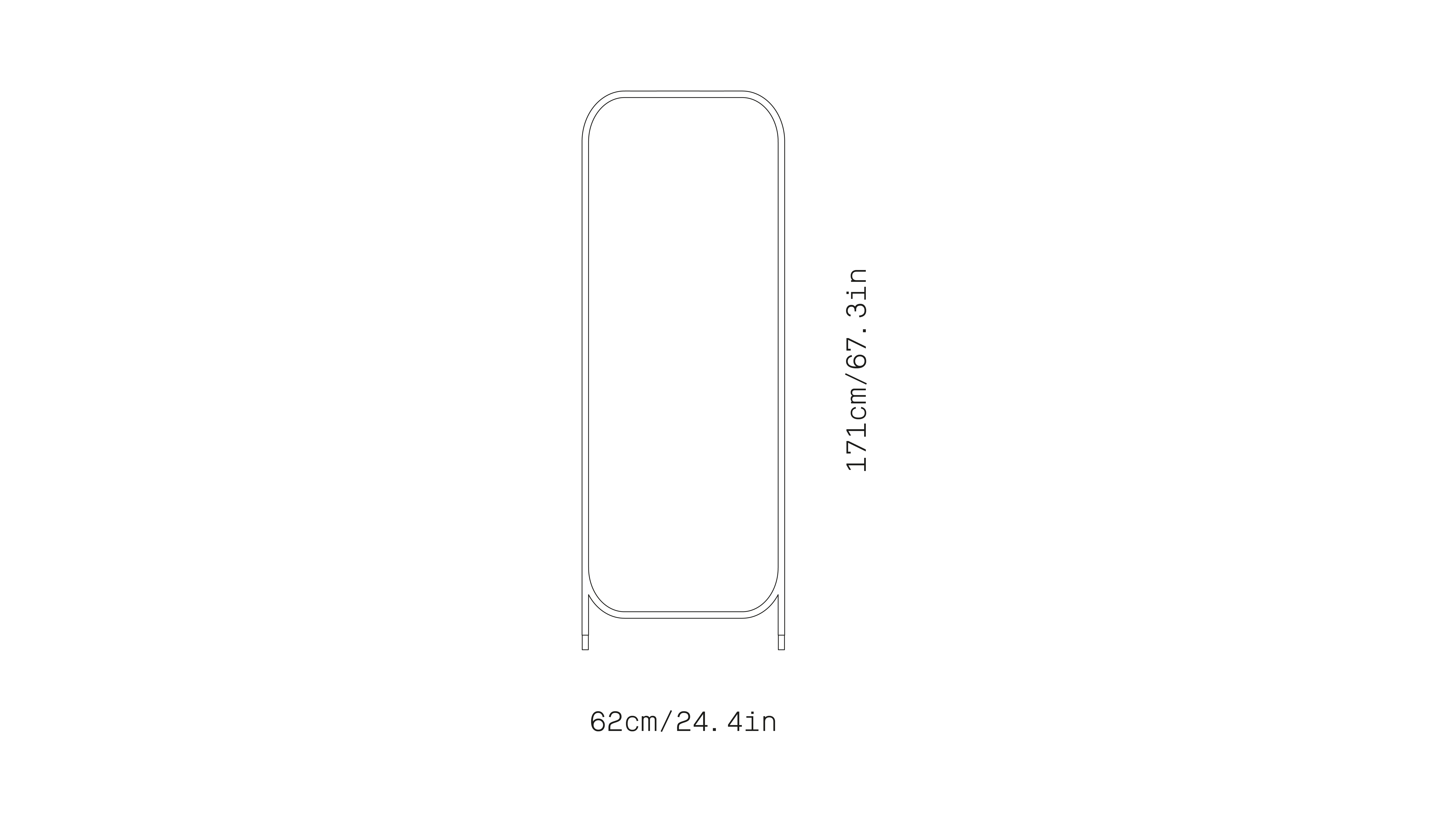 Vertical Mirror is a wall mirror with a rectangular geometric shape. Born from the interpretation of moving or moving objects without the need for permanence in a space, being able to be one day in the living room and another in the main room. Designed to support and fix standing against the wall, simple and contemporary lines with a metal structure finished with two cork feet that prevent displacement.