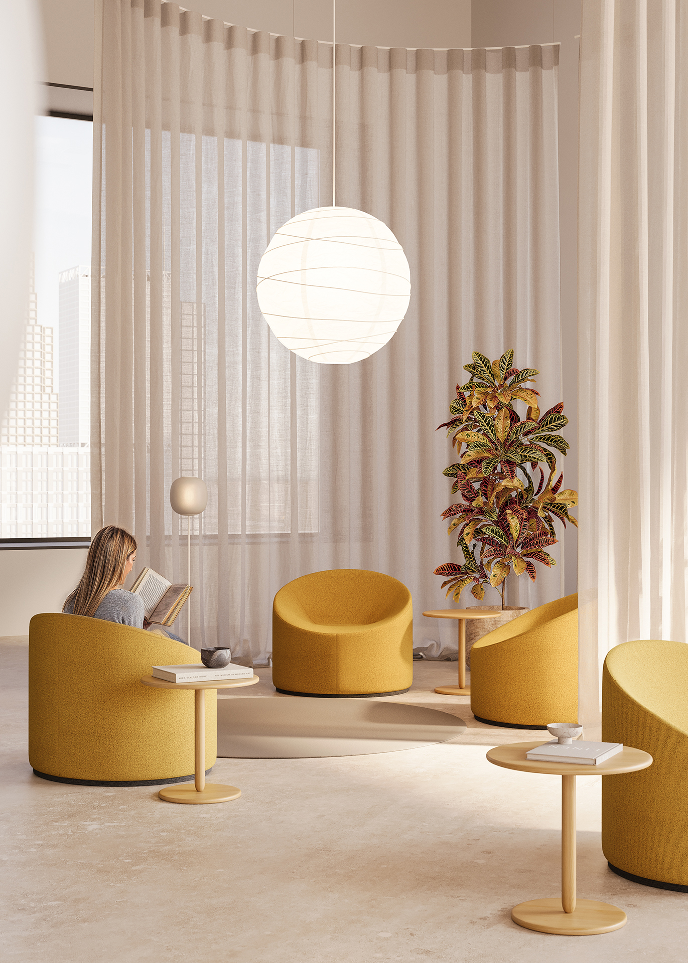 Inspired by the fascinating world of mushrooms, Bolet evokes the coffee cup shape of mushrooms. It is a small-sized seating collection that fits into any corner. Magically. Its simplicity is only altered by one elegant touch: the elongated button in its centre, which holds the design both functionally and visually in a kind of contemporary quilting.