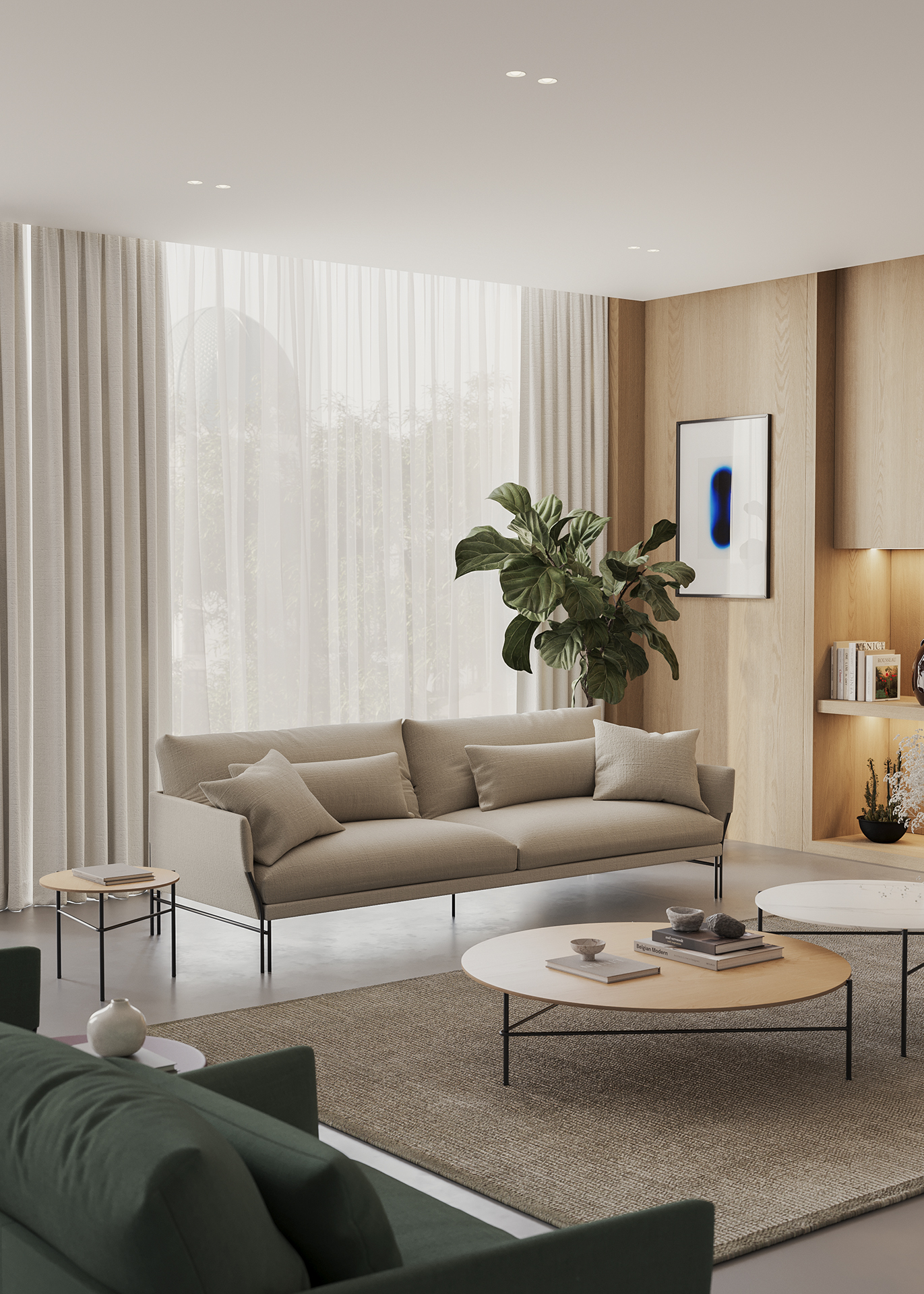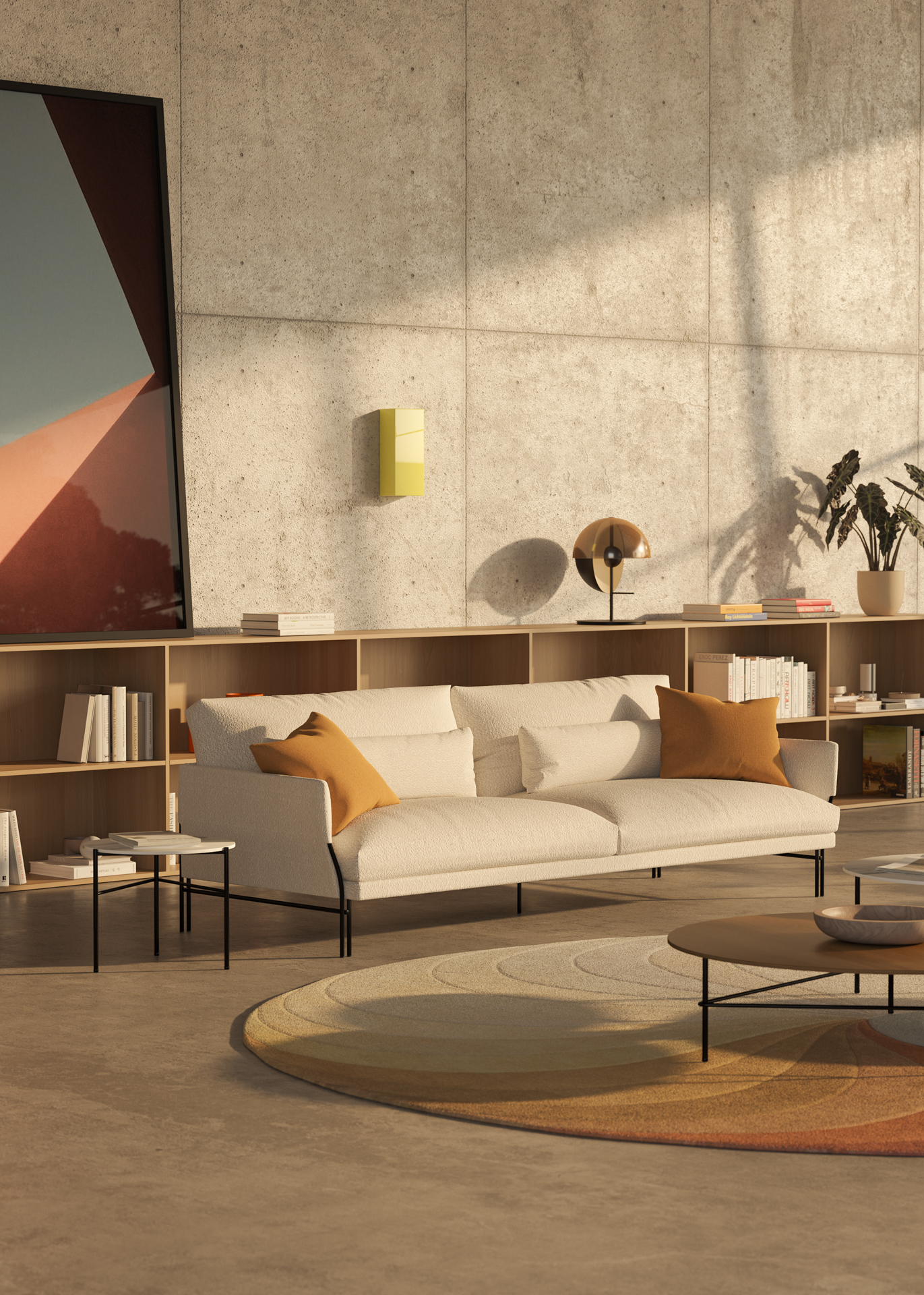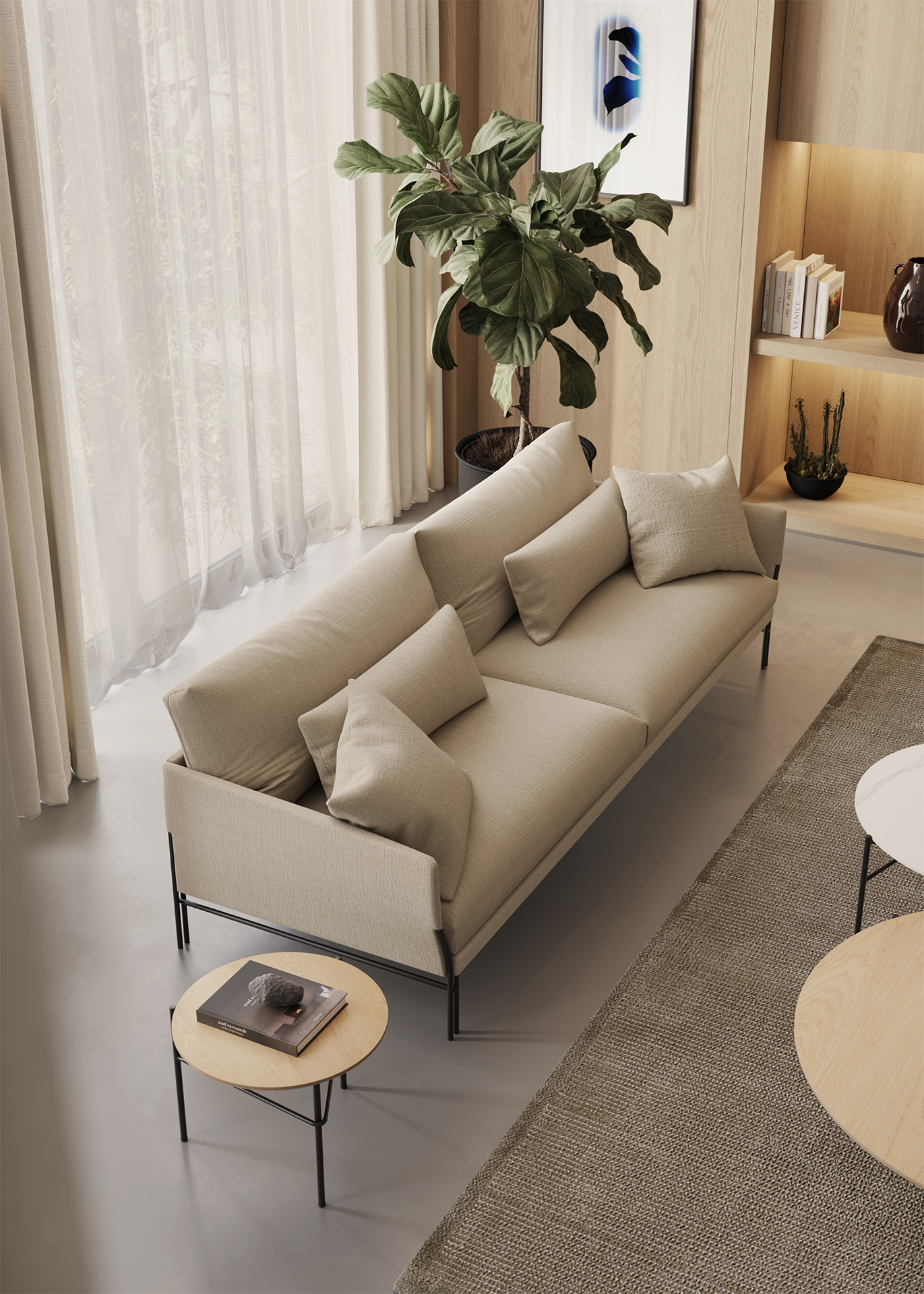 Majestic unites comfort and lightness based on a padded body that balances straight and sinuous lines, and invites you to enjoy a moment of intimacy, rest or a friendly conversation, in surroundings that ooze with sophistication and charm. Aesthetically, one of its most distinct features is a visible base made up of a double leg system that reveals the lightness and the strength of the structure.