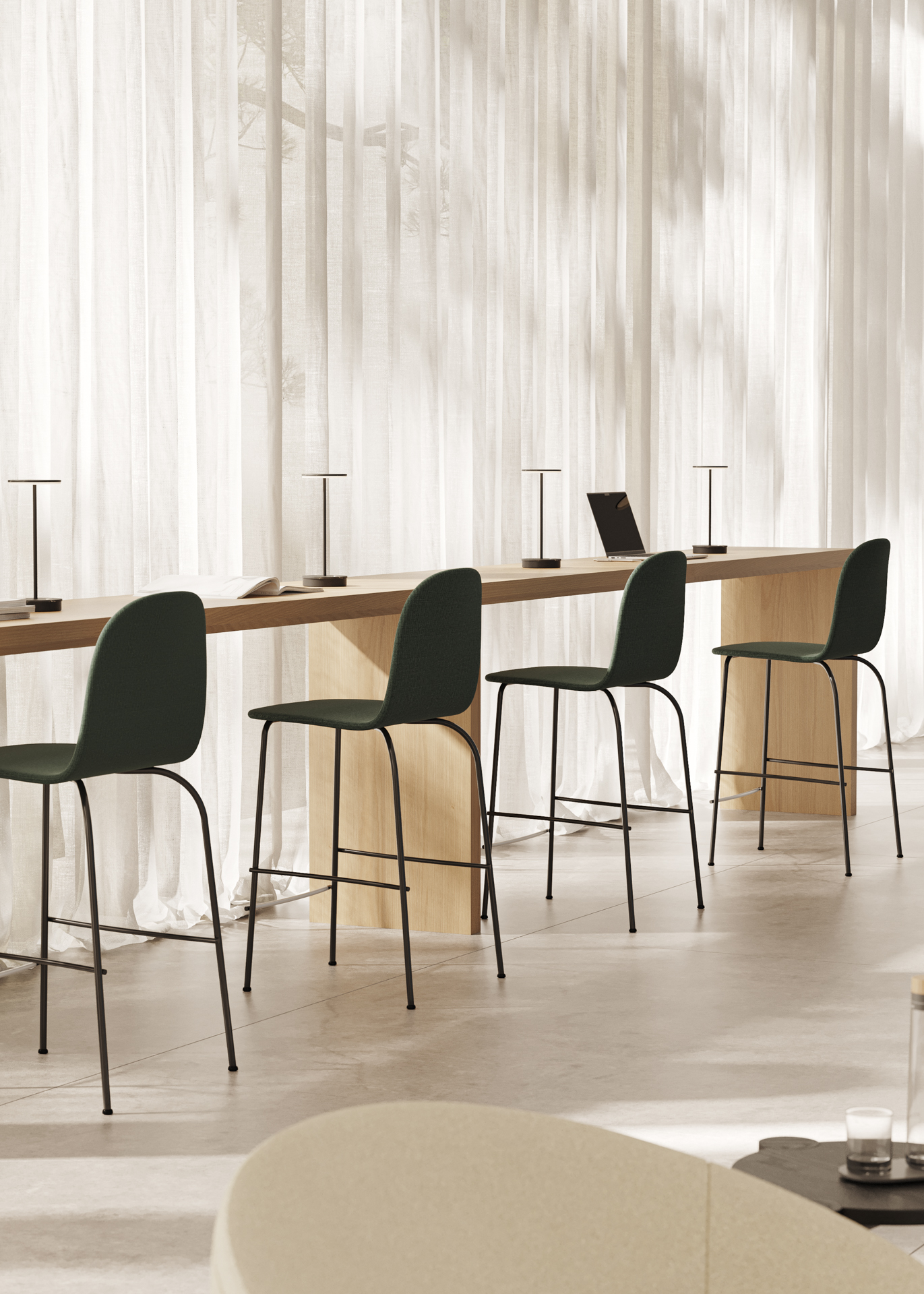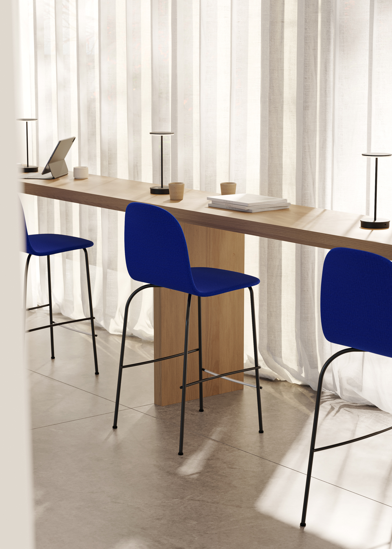 Terra series is a large collection of seats with different finishes and types of feet. Terra metal is distinguished by the great craftsmanship and industrial work of the metal behind each piece, two transverse rods on the sides make this chair a different collection. Its seat and back shell is exposed with the metal foot.