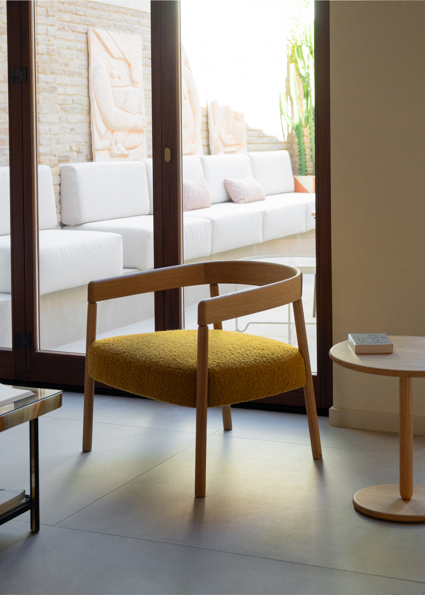 Nua es una butaca con una curvatura fluida en su respaldo y armoniosa en su simplicidad. Un asiento que, como el resto de los elementos de la marca, ha sido desarrollado con el objetivo de crear ambientes de interior perfectos, tanto en espacios residenciales como en contract, ya que se puede utilizar en diferentes rincones del hogar, pero también en salas de espera de un hotel, el hall de un restaurante, despacho o hospital. Nua lleva el concepto de confort, descanso, relajación, disfrute y de momentos de compartir del hogar al mundo hospitality, de la oficina y el retail y traspasa esa frontera más rígida propia de estos ámbitos.