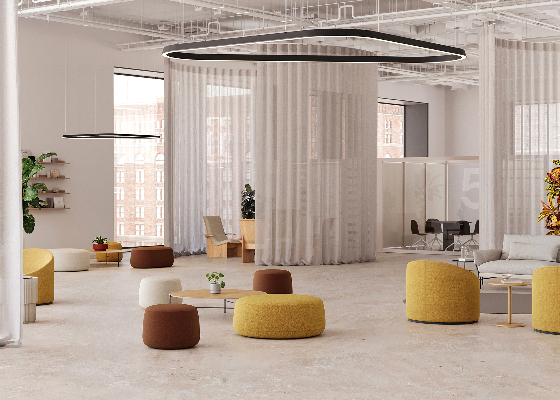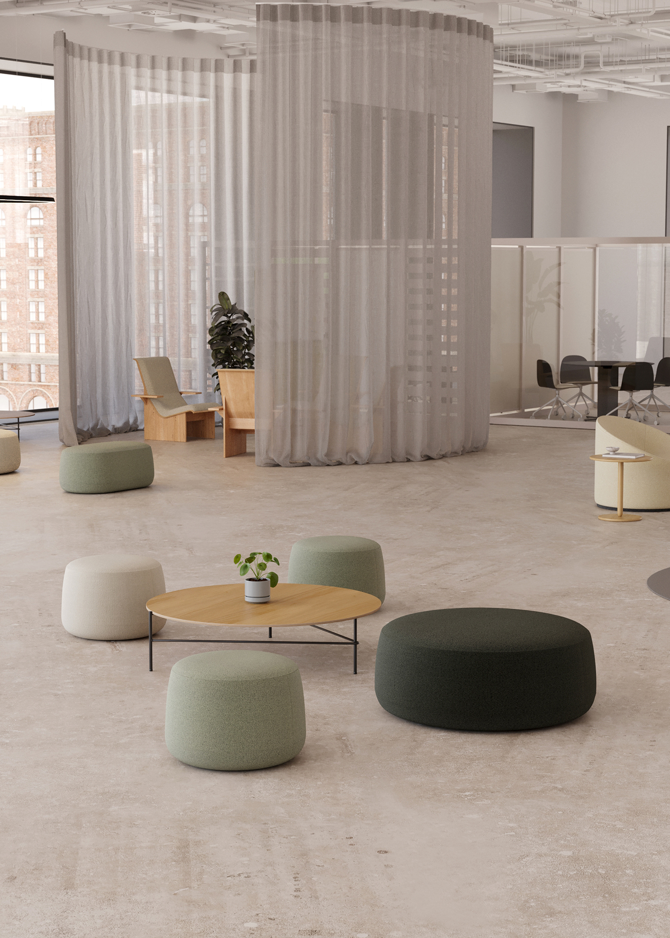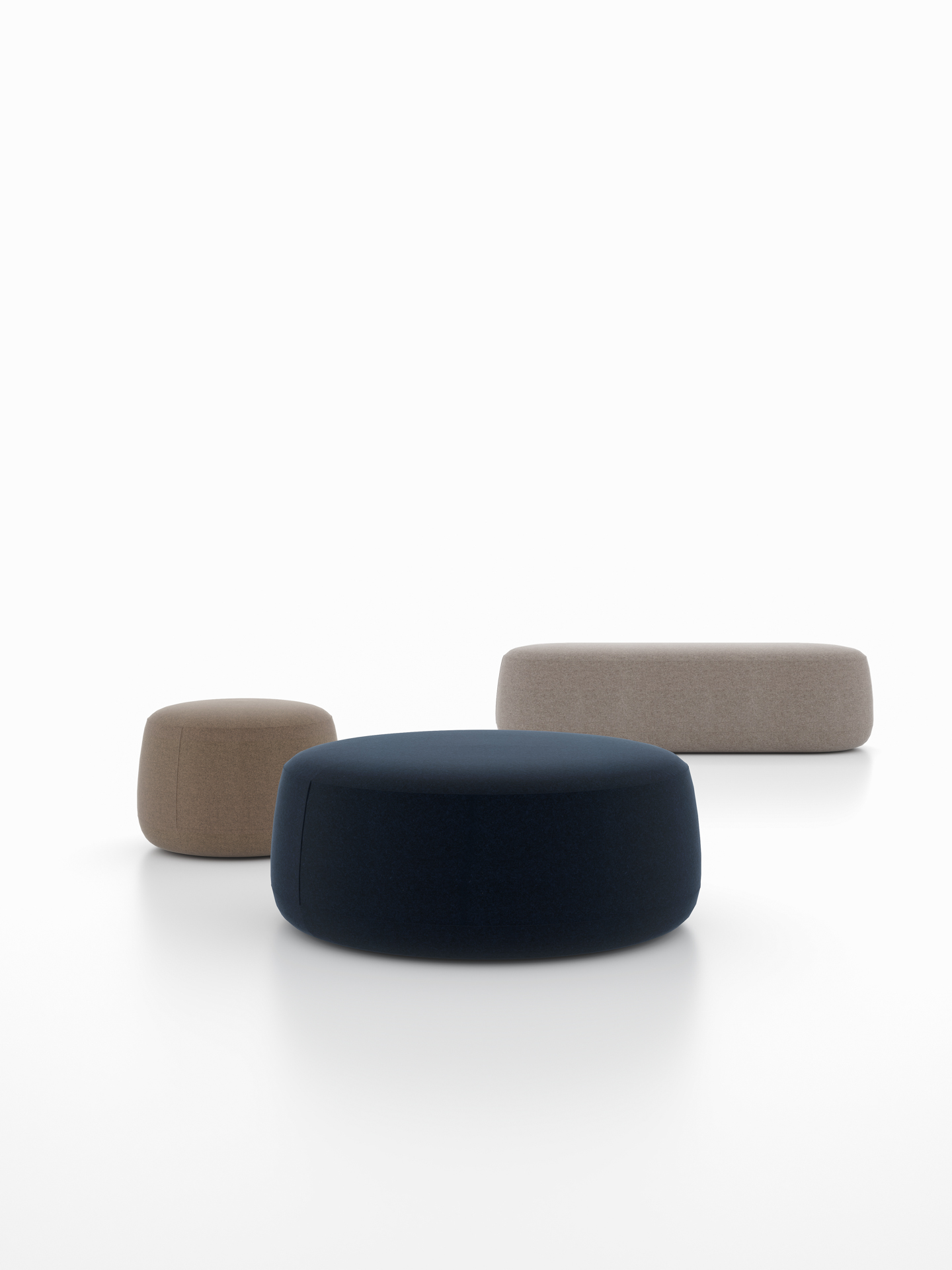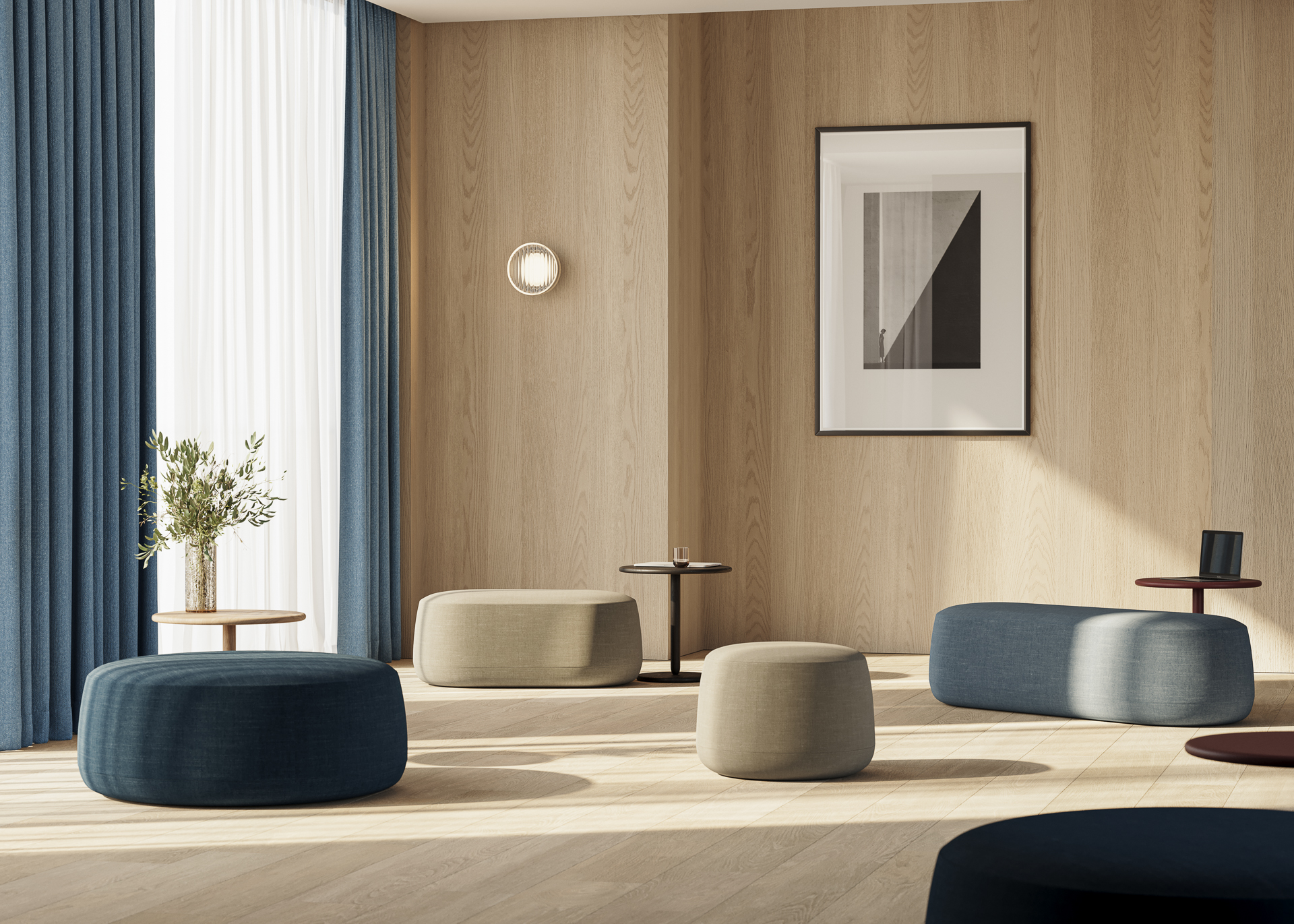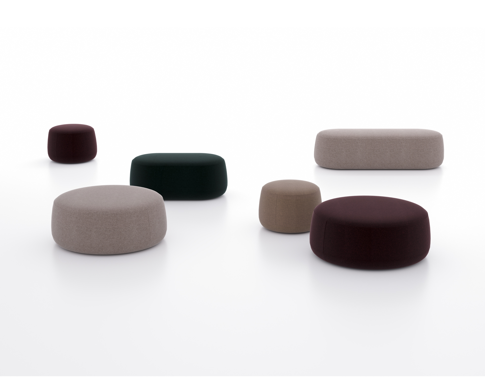 Las formas orgánicas y geométricas definen esta versátil colección de poufs que aportan carácter y personalidad a los espacios públicos y privados.