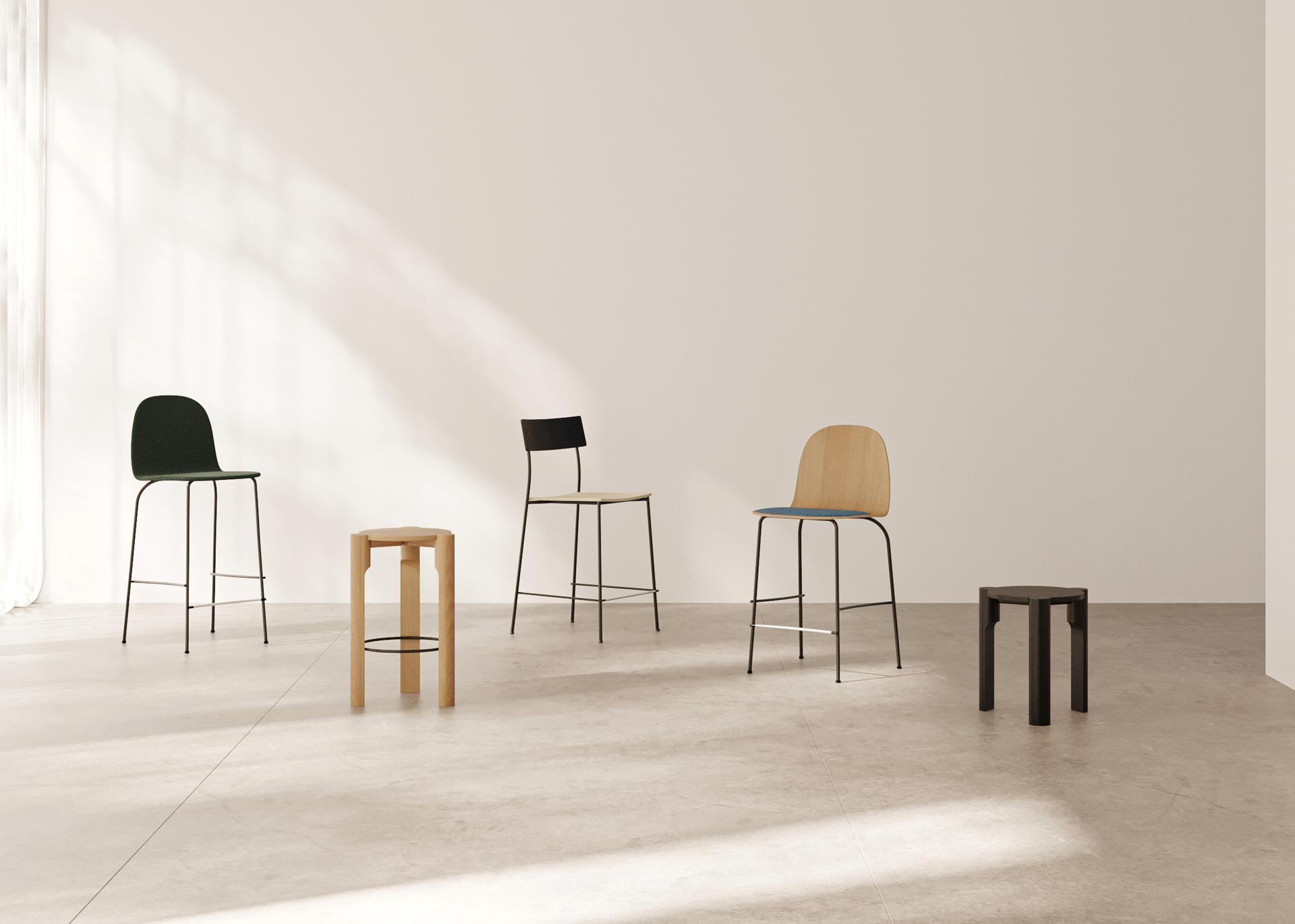 Terra series es una gran colección de asientos con diferentes acabados y tipos de pie. Terra Metal se distingue por el gran trabajo artesano e industrial del metal que hay detrás de cada pieza, dos varillas transversales en los laterales hacen de este taburete una colección diferente. Su carcasa de asiento y respaldo queda al descubierto con el pie metálico.
